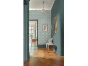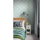 Vliesové tapety na zed, světle béžové podklad, motivy modrých listů a zelených granátovéch jablek. Co vás zaujme: netradiční přírodní motivy. Design: nadčasové. Úroveň tapetovéní: pro začátečníky. Země původu: Velká Británie.