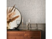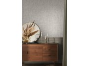Luxusní vliesové tapety s vinylovém povrchem, šedo-béžové pololesk, plastické hrubší látkové texura. Foto interiéru je pouze ilustrační - odlišné barvy.