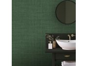 Luxusní vliesové tapety s vinylovém povrchem, šedo-zelený pololesk, plastické hrubší látkové texura. Foto interiéru je pouze ilustrační - odlišné barvy.