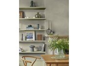 Vliesové tapety s vinylovém povrchem, imitace hrubší tkaniny, melanž v odstínech hnědé a béžové, místy zelené. Foto interiéru je pouze ilustrační - odlišné barvy.
