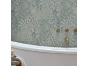 Tyrkysové vliesové tapety na zeď, motiv divoké přírody - stromy, listy, květiny.