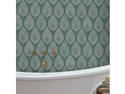 Tyrkysové vliesové tapety na zeď, motiv divoké přírody - stromy, listy, květiny.