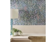 Vliesové tapety na zeď, modrý podklad, květinové vzor v odstínech zelené, modré, růžové, fialové a ornažové. Co vás zaujme: vyrobeno s ohledem na udržitelnost a ekologii. Design: nadčasové, přírodní. Úroveň tapetovéní: pro začátečníky. Země původu: Velká