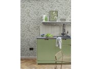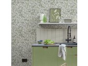Vliesové tapety na zeď, šedo-béžové podklad, motiv rozkvetlých větviček Myrty v odstínech zelené, bílé, hnědé stonky. Co vás zaujme: vyrobeno s ohledem na udržitelnost a ekologii. Design: přírodní. Úroveň tapetovéní: pro začátečníky. Země původu: Švédsko.