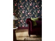 Vliesové tapety na zeď, černý podklad, bohatý květinové vzor v odstínech zelené, růžové a okrové. Co vás zaujme: vyrobeno s ohledem na udržitelnost a ekologii. Design: přírodní. Úroveň tapetovéní: pro začátečníky. Země původu: Švédsko.