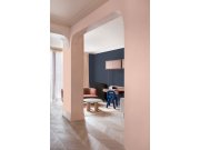 Plastické bledě růžové vliesové tapety s vinylovém povrchem, dekor beton, štuk. Foto interiéru je pouze ilustrační - odlišné barvy.