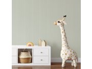 Vliesové tapety na zeď, klasický proužkové vzor v odstínech lipové zelené a krémové. Nejširší proužek cca 4,3 cm. Co vás zaujme: vyrobeno s ohledem na udržitelnost a ekologii. Design: nadčasové, skandinávský. Úroveň tapetovéní: pro začátečníky. Země původ