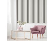 Bílá vliesové tapety na zeď, pruhy v odstínech šedé a černé. Pruhy cca 8 cm. Co vás zaujme: hodí se do všech typů místností. Design: nadčasové, klasický. Úroveň tapetovéní: pro začátečníky. Země původu: Španělsko.