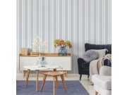 Současné trendy nadčasovém pruhům a proužkům přejí. Jsou kombinovatelné se vzorovémi i jednobarevnými tapetymi, nebo samostatně dokáží vymezit a zútulnit prostor. Netradiční modro-bílá proužkované vliesové tapety.