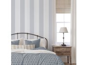 Vliesové tapety na zeď, klasický proužkové vzor v odstínech smetanové bílé a modré. Nejširší proužek cca 4,3 cm. Co vás zaujme: vyrobeno s ohledem na udržitelnost a ekologii. Design: nadčasové, skandinávský. Úroveň tapetovéní: pro začátečníky. Země původu