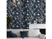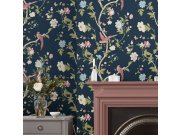 Tmavě modrá vliesové tapety na zeď, motivy květin, motýlků a ptáků. Co vás zaujme: barvy. Design: romantický, přírodní. Úroveň tapetovéní: pro začátečníky. Země původu: Velká Británie.
