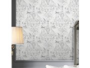 Šedá vliesové tapety na zeď, motivy ptáků a stříbrných ornamentů. Co vás zaujme: efektní vzor. Design: zámecký, romantický. Úroveň tapetovéní: pro začátečníky. Země původu: Velká Británie.