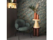 Luxusní modrá vliesové tapety s vinylovém povrchem, motivy listů v odstínech bronzové.