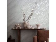 V kolekci jsou i obrazové tapety s motivem lesa, které působí jako umělecké dílo. Tlumené odstíny béžové, šedé a bílé vytvářejí klidnou, jemnou atmosféru.