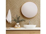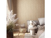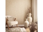 Béžové/camel geometrické vliesové tapety s vinylovém povrchem, imitace dřevěného obkladu.