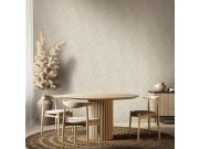 Vliesové tapety s vinylovém povrchem, vzhled dřevěného cik cak obložení, odstíny krémovo-šedé. Šíře pruhu 13,5cm. Co vás zaujme: autentický vzhled, vysoká odolnost a omyvatelnost. Design: eklektický, rustikální. Úroveň tapetovéní: pro začátečníky. Země pů