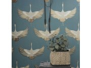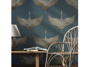Vliesové tapety s vinylovém povrchem, podklad hrubší modrá textilní struktura, hnědo-béžové motiv letících volavek vzor evokuje výšivku. Co vás zaujme: efektní vzor, vysoká odolnost a omyvatelnost. Design: přírodní, luxusní. Úroveň tapetovéní: pro začáteč