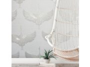 V kolekci objevíte reliéfní listy tvořící souvislé plochy, jemné lesky na lněné struktuře, elegantní motivy jeřábů nebo vzory připomínající skládané látky. Barevná paleta se pohybuje v neutrálních, přírodních tónech, které nechají vyniknout materiál i strukturu.