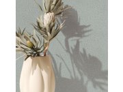 Jemně plastické, matná, šedo-modrá vliesové tapety s vinylovém povrchem - imitace štukové omítky. Foto interiéru je pouze ilustrační - odlišné barvy.