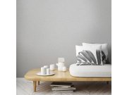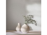 Luxusní vliesové tapety s vinylovém povrchem, šedo-béžové pololesk, plastické hrubší látkové texura. Foto interiéru je pouze ilustrační - odlišné barvy.
