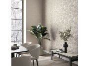 Pololesklá béžové jemně plastické vliesové tapety s vinylovém povrchem, geometrcický vzor, místy zlaté třpytky.