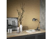 Luxusní vliesové tapety s vinylovém povrchem -  plastické textura hrubší tkaniny, odstíny hnědo-zlaté.