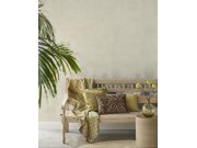 Pololesklá béžové jemně plastické vliesové tapety s vinylovém povrchem, geometrcický vzor, místy zlaté třpytky.