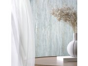 Plastické vliesové tapety na zeď,  modrý podklad, listy zelené, tyrkysové a růžové zlato.