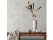 Jemně plastické šedobéžové vliesové tapety s vinylovém povrchem, motivy květin s nádechem do zelena, látkové textura.