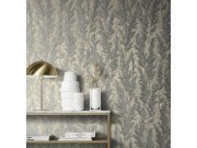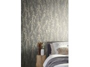 Luxusní vliesové tapety s vinylovém povrchem, šedo-stříbrné pololesklé metalické listy. Foto interiéru je pouze ilustrační - odlišné barvy.
