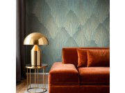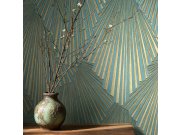 Luxusní pololesklá geometrické vliesové tapety s vinylovém povrchem, odstíny zelené a kovově zlaté.