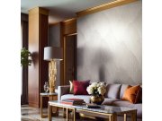 Luxusní geometrické vliesové tapety s vinylovém povrchem, efektní střídání plastických textur, odstíny šedo-béžové. Foto interiéru je pouze ilustrační - odlišné barvy.