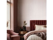Vliesové, pudrově růžové, tapety s metalickými akcenty. Hrubší látkové textura, podklad vlies, povrch vinyl.