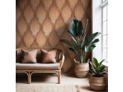 Luxusní vliesové tapety s vinylovém povrchem, drobná plastické kolečka tvoří efektní šupinové vzorek, barva hnědá s jemným zlatým pololeskem. Foto interiéru je pouze ilustrační - odlišné barvy.