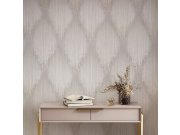 Luxusní vliesové tapety s vinylovém povrchem, béžové geometrické vzory, látkové textura, šedo-hnědý pololesk.