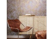 Luxusní vliesové tapety s vinylovém povrchem, hnědé pololesklé plastické metalické listy, zlaté obrysy.
