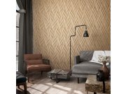 Jemně plastické, hnědá geometrické vliesové tapety s vinylovém povrchem, 3D imitace obkladů, zlaté detaily.