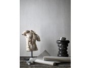 Luxusní vliesové tapety s vinylovém povrchem, šedo-béžové pololesk, plastické hrubší látkové texura. Foto interiéru je pouze ilustrační - odlišné barvy.