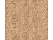 Vliesové tapety imitace krokodýlí kůže. Plastické textura ze sametově hebkého flocku v odstínech zlato-okrové a hnědé. Doporučujeme si vyžádat vzorek.