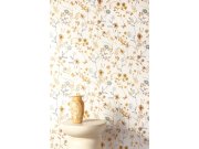 Vliesové tapety na zeď, podklad barvy slonové kosti, květinové vzor v odstínech hnědé, stříbrné a zlaté, jemná textura. Foto interiéru je pouze ilustrační - odlišné barvy. Co vás zaujme: vyrobeno s ohledem na udržitelnost a ekologii. Design: přírodní. Úro