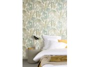 Vliesové tapety na zeď, smetanově bílý podklad, vzor listů v odstínech okrové a zelené, střídání matu a metalického pololesku. Co vás zaujme: vyrobeno s ohledem na udržitelnost a ekologii. Design: přírodní. Úroveň tapetovéní: pro začátečníky. Země původu: