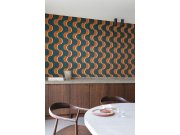 Vliesové obrazové tapety na zeď, vlnkové vzor v odstínech hnědé, modré, vínové, okrové. Pro větší šířku lze kombinovat s tapetou DGRHA1032-300 a DGRHA1033-300 - viz foto. Co vás zaujme: vysoká odolnost a omyvatelnost. Design: grafický. Úroveň tapetovéní: