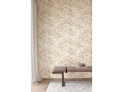 Jemně plastické vliesové tapety na zeď, květinové vzor v odstínech béžové a hnědé, detaily pololesklé béžové, podklad tmavě šedý. Foto interiéru je pouze ilustrační - odlišné barvy.