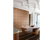Vzor připomíná ručně tkanou látku – jemně nepravidelnou, přirozenou a krásně klidnou. Díky tomu stěny nepůsobí ploše, ale získají hloubku a texturu. Je to ten typ nenápadné elegance, který interiér zútulní a dodá mu styl, aniž by působil okázale.