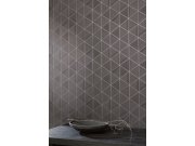 Luxusní vliesové tapety s vinylovém povrchem, šedé geometrické vzory, látkové textura, šedo-stříbrný pololesk.