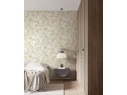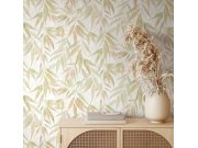 Vliesové tapety na zeď s vinylovém povrchem se vzorem listů v zelených a béžovéch odstínech.
