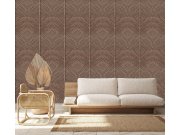 Hnědá /terrakota geometrické vliesové tapety s vinylovém povrchem, imitace dřevěného obkladu. Foto interiéru je pouze ilustrační - odlišné barvy.