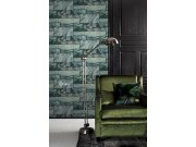 Zelenočerná vliesové tapety na zeď, imitace kamenného obkladu.