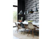 Jemně plastické vliesové tapety na zeď, vzhled tkaniny, odstíny tmavé hnědo-šedé a černé, ve vzoru s metalickými akcenty. Foto interiéru je pouze ilustrační - odlišné barvy. Co vás zaujme: vyrobeno s ohledem na udržitelnost a ekologii. Design: rustikální,