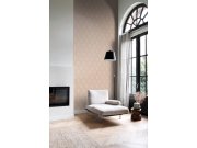 Starorůžové vliesové tapety na zeď, geometrický vzor v retro stylu - efektní střídání lesku a matu.